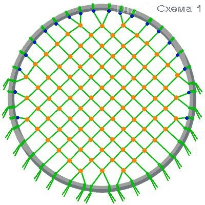 Затем скрепляем обручи с одного края шнуром.С другого края крепим опорные штанги из дерева.Длину опорных штанг выбираем на свое усмотрение.Чтобы обручи не соскальзывали,на концах этих штанг делаем пропилы.