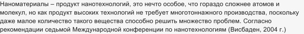 Нановолокна и нанотекстиль не являются готовыми продуктами.