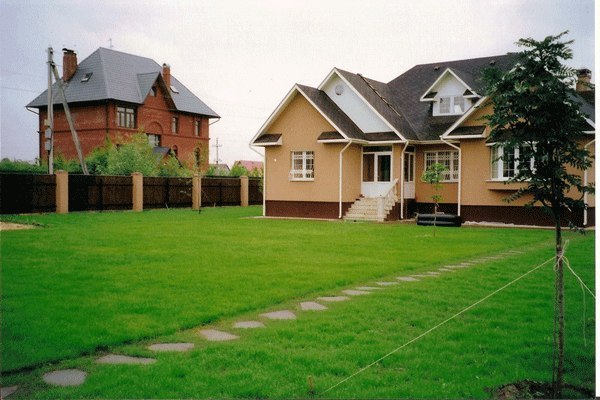 Газон, зеленую зону лучше планировать в центре свободного участка перед домом. Газон должен быть ухоженным.