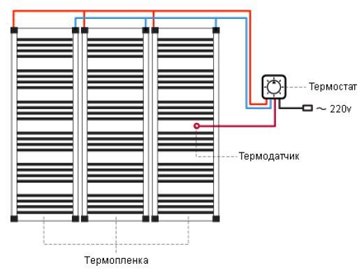 На теплоотражающий материал уложите инфракрасную пленку так, как это описано в инструкции, с учётом того, что полосы должны лежать на одной линии, чтобы потом при креплении пола не задеть пластины.