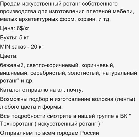 Есть полосовой искусственный ротанг, ротанг-полумесяц, ротанг в виде прутков и. т.д.