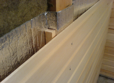 Крепится с зазором до 20-и мм от поверхности и с таким же зазором от финишного материала (вагонки к примеру).