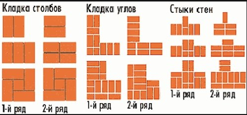 Виды кладок разные, их отличия привязаны к тому, в каком месте идет кладка и для чего она предназначена. Кладка кирпича всегда идет внахлест - один кирпич цепляет своей поверхностью другой, который ниже, сцепление располагается в шахматном порядке.