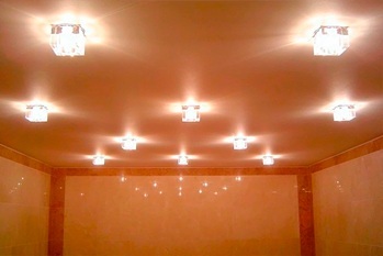 А вот про ярко: существуют нормы освещенности помещения. Для разных помещений используются разные параметры. Ванные комнаты принято относить к помещениям, требующим средней степени освещенности. По нормам (при потолках, не выше 3 метров, на каждый метр площади требуется 15-18 Вт для освещения лампами накаливания, 10-12 Вт для галогеновых ламп и 3-4 Вт для люминисцентных и светодиодных. Чтобы рассчитать, умножаете эти цифры на площадь помещения. Получаете общую мощность. И подбираете светильник, в котором можно установить требуемое количество лам, чтобы получить необходимое значение. Например: площадь ванны - 3 м², 3*18=54 Вт. Значит, Вам потребуется светильник с возможностью установки либо двух ламп накаливания по 25 Вт, либо, одной на 40-60 Вт. Точно так же, если собираетесь использовать лампы другого типа - галогеновые или светодиодые. Это расчет верхнего, главного света. В дополнение к нему можно сделать освещение над зеркалом, или другого необходимого места.