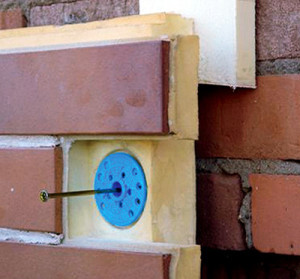 Дюбель-грибок (тарельчатый дюбель, правильное название) в пенополистирол, то есть с краю панелей,