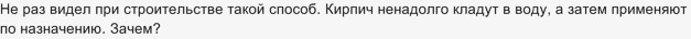 Зачем кирпич кладут в воду?