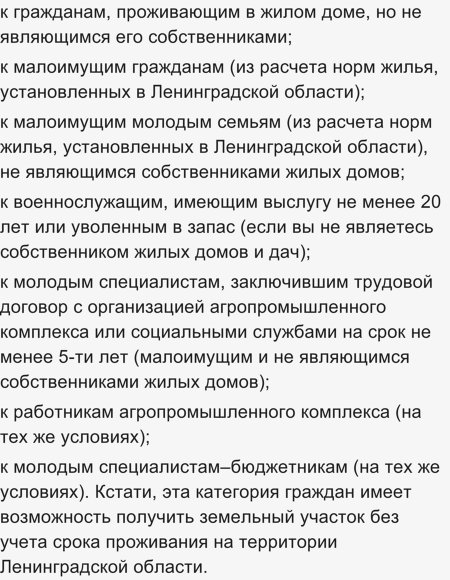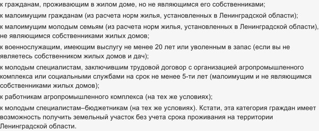 По законодательству в Ленинградской области могут бесплатно получить землю следующие категории граждан:
