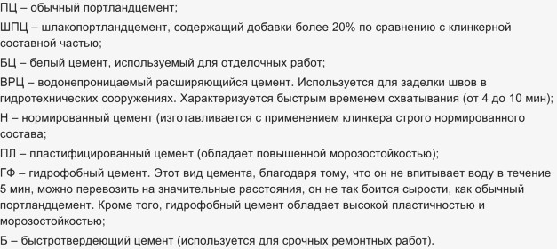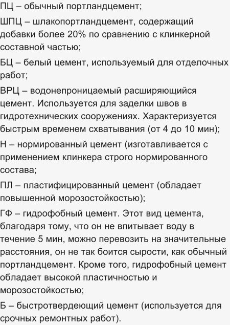 Есть ещё портландцемент со специальными добавками, которые оказывают влияние на его характеристики.