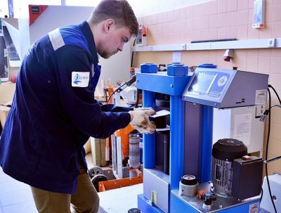 В лабораториях, из цемента и песка изготавливают испытуемые образцы (не менее 3-х) определённого размера (используются специальные формы, вибростолы).