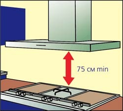 Считается, что оптимальное расстояние от плиты до вытяжки должно составлять 0,8 метра. Но есть различные моменты и нюансы, когда это расстояние может быть изменено в ту или другую сторону. Это может быть и сама конструкция вытяжки, и количество вентиляторов в ней и мощности их электромотов, это может зависеть и от самой плиты,- количества комфорок, мощности и высоты их пламени. Ну и в конце концов и от удобства самого размещения,- как удобно это будет для человека. Вот у меня например стоит вытяжка "Крона", у неё наклонная конструкция и в инструкции минимальное расстояние указано в 60 см. Но так, как на третьей скорости оборотов, извините за сравнение, даже яичница от сковородки отрывается, то и жар от плиты будет быстро и сильно поступать в воздуховод и я увеличил расстояние до 90 см,- вытяжка справляется отлично даже на второй скорости и к плите подходить удобно.