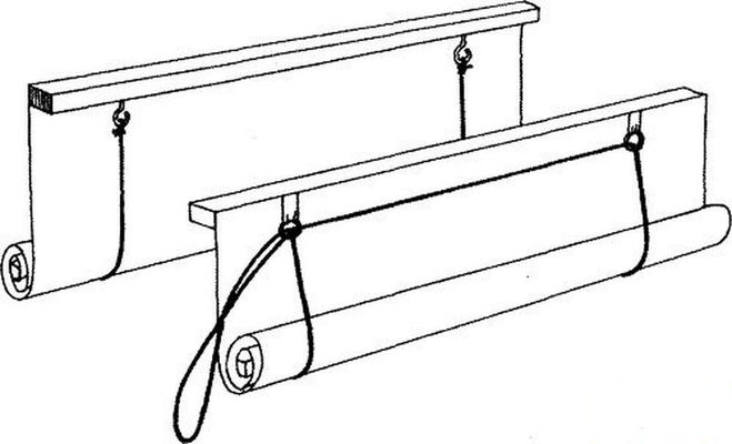 Для того, чтобы сделать шторы также нужны ленты (шнуры) длиной - две длины полотна и плюс 25 см. Для креплений можно приобрести кассетную систему либо изготовить ее самостоятельно из деревянного бруса или металлической трубы.