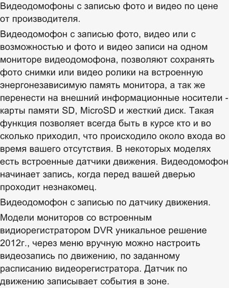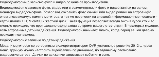 Так же в продаже уже имеются готовые решения где функция записи и хранения данных непосредственно интегрирована в сам блок видео - домофона. Так же данный домофон оборудован и датчиком движения, ночным видением, а так же и функцией переноса данных на внешнем носителе. Стоят такие домофоны от семи и до двадцати пяти тысяч рублей. Данные могут хранить как во встроенной памяти, так и на СД карточках или ЮэСБи флешках.