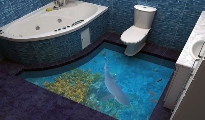Красивый и необычный пол в ванной можно сделать не только с помощью плитки, но и декоративным покрытием! Есть инновационная итальянская разработка - Plasma3D Loggia - пастообразное покрытие, которое наносится на любые поверхности: стены, пол (даже поверх системы теплого пола), поверх плитки, обоев на мебель. Эффекты различные: под дерево, под камень, кракелюры, под кожу...