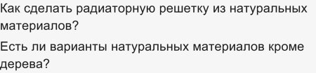 Натуральный материал, но не дерево, Вы тут же отметаете целый ряд достойных материалов применяемых как раз для экранов на радиаторы отопления.