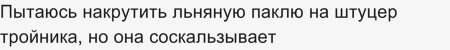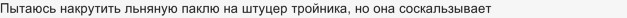 Пакля соскальзывает только по двум причинам, пакля сухая и подмотка без натяжки, устраните эти две причины и всё получится.