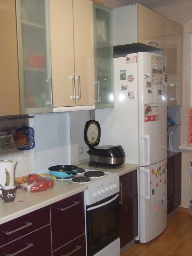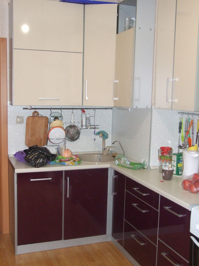 На самом деле 9 квадратных метров это не так мало, как кажется на первый взгляд. Когда мы выбирали кухню(у меня 10м) я даже не представляла какой она может быть. Грамотный дизайнер спроектирует вам кухню сэкономив по максимуму пространство. Для начала вам покажу свою кухню: