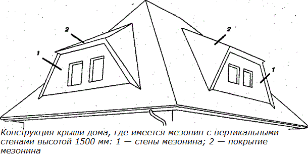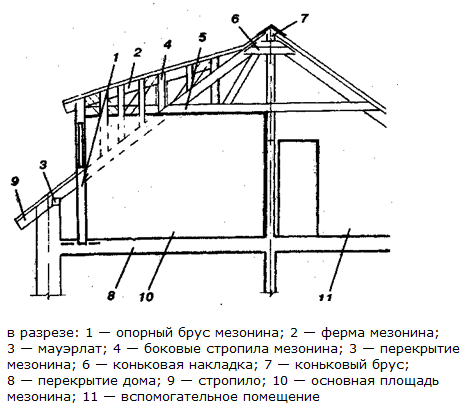 Мезонин - помещение/надстройка над средней частью дома. Наружные стены его поднимаются до определенной отметки вертикально, а затем переходят в скат крыши.
