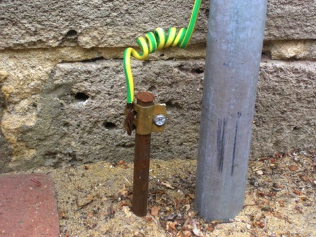 Вокруг проволочной трубы делаем петлю и крепим её к молниеприёмнику. Для того, чтобы закрепить к молниеприёмнику используем сварочные работы.