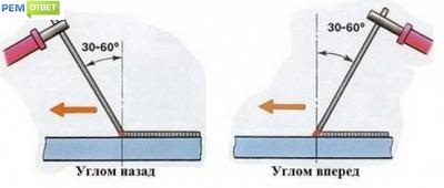 Но тут есть важный нюанс, чтобы избежать залипание электрода его нужно держать под углом, и не важно угол назад, или вперёд, вот фото
