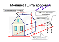Тросовые молниеотводы защищают бОльшую площадь, в отличии от стержневых.