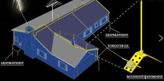 В общем-то удар молнии губителен не только для деревянных строений, по это причине схема молниеотвода для деревянного дома, или кирпичного, одна и та же.