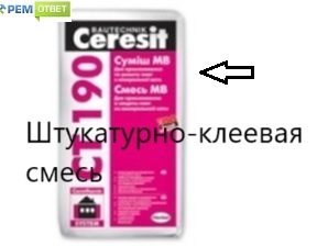штукатурно-клеевую смесь Церезит СТ 190 (Ceresit).