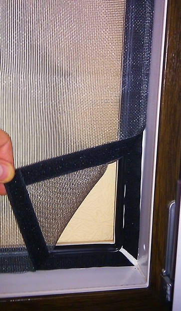Можно оснастить дверь липучками. Этот способ крепления очень удобен в том случае, если вы ходите через дверь нечасто. То есть, открыли и забыли, так как при большой пропускной способности двери будет очень проблематично каждый раз отдирать сетку.