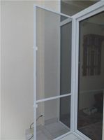 Достаточно новая конструкция - рулонная. Она подразумевает наличие над дверью направляющего профиля, сетки в рулоне и специальной поперечной планки с ручками. Принцип работы заключается в том, что когда сетка не нужна, она прячется в короб на дверью. Напоминает это всё роллеты.