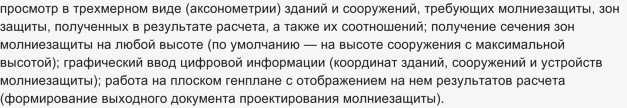 Автоматизированная подсистема РМЗ является одной из четырех составных частей компьютерной программы ElectriCS Storm, применяемой для того, чтобы рассчитать и запроектировать молниезащиту, параметры заземления отдельно зданий (сооружений) и электроподстанций, а также для расчета электромагнитной обстановки. Использование этой системы позволяет ускорить и облегчить работу проектировщиков вместе с повышением качества их работы, так как программа в состоянии одновременно выдавать результаты многовариантного расчета.