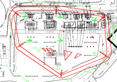 А это пример построения программой горизонтального сечения молниезащитных зон