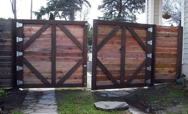 Что нужно помнить при производстве ворот из дерева? То, что дерево не обладает такой же прочностью, как к примеру железо. Поэтому при монтаже каркаса ворот обязательно придётся делать укосины, дабы створки позже под своим весом не просели. Каркас будет выглядеть примерно вот так