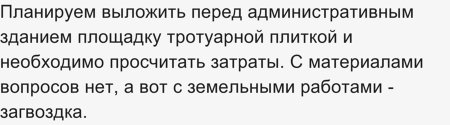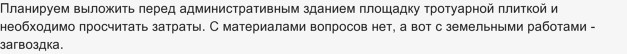 К примеру выемка грунта, подготовка основания под тротуарную зону, цена 120-ь рублей квадратный метр.