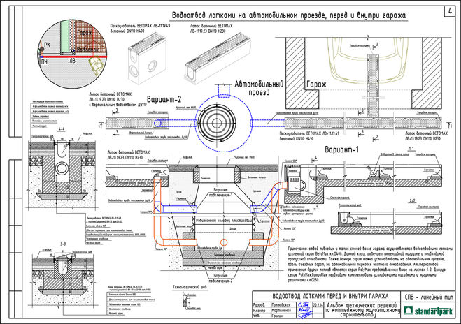 В этом плане посмотреть чертежи ливневой канализации можно увидеть лишь относительно и то не относящиеся к Вашей задаче. Таких чертежей просто нет, зато фотографий достаточно много в интернете и пояснений к ним тоже много. Дело все в том что каждый чертеж чертится когда есть размеры участка, глубины промерзания и прочее, тогда они имеют смысл. В плане монтажа труб и дождеприёмников ПВХ так здесь особых проблем нет, тем более Вы проводили монтаж чугунных труб а с ними работать гораздо сложнее. Навык у Вас имеется дальше нужно определится с глубиной укладки все будет зависеть от глубины промерзания и добавьте еще с пол метра для надежности. Можно даже еще и покрыть утеплителем хотя это делают редко. Вот пример чертежа гаража: