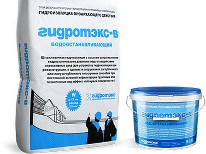 Если речь о Гидротексе-В покупаемом в мешках (сухая смесь), разводится водой, но воды должно быть не более 25% от общей массы, слой нанесение "Гидротекса-В" на поверхность от 0,5-ь, до 2-х мм.