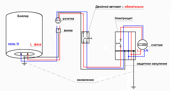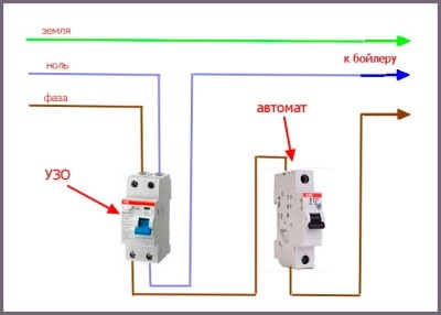К бойлеру лучше установить УЗО, это помимо автоматического выключателя (двухполюсного).