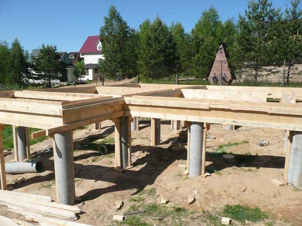 Столбчатые фундаменты могут быть выполнены из разного материала. В старину их делали из обыкновенных деревьев, сейчас для этого есть трубы, кирпич или даже обыкновенные железобетонные кольца. Так как у Вас дом будет не тяжёлый, то можно присмотреться к последнему варианту неглубокого заложения.