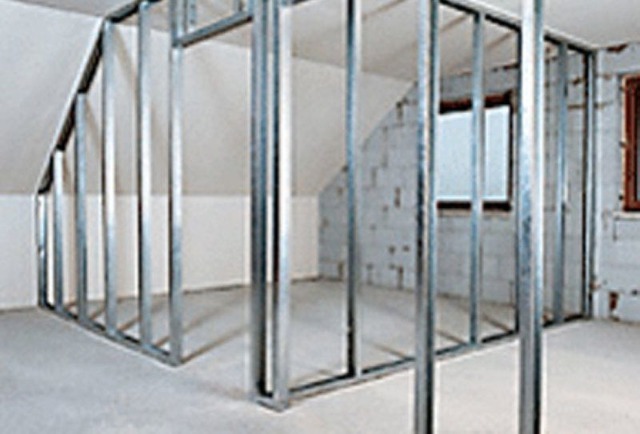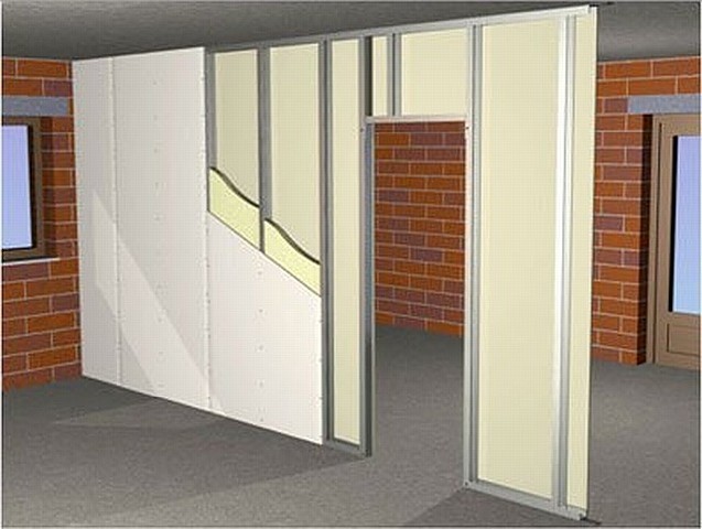 Профили режут ножницами по металлу, а гипсокартон строительным ножом - делается надрез, после чего гипсокартон "ломается" и ножом разрезается вторая сторона. Когда каркас обшит гипсокартоном можно приступать к шпатлеванию поверхности.