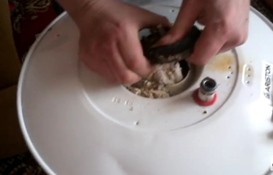 Теперь наша задача состоит в том, чтобы вытащить сам ТЭН. Для этого необходимо открутить гаечки или другие крепления. Когда это будет сделано, можно извлекать элемент. Собственно, как видите, ничего особо сложного в этом нет. Теперь ТЭН необходимо либо заменить, либо почистить, если Вы проводите профилактические работы. Чистить ТЭН необходимо деревянной палочкой, желательно. Также в чистке нуждается сама емкость водонагревателя. Я советую купить одну-две бутылки кока-колы и дать накипи отстояться. Так же можно замочить и ТЭН. Данный напиток гадость еще та, накипь убирает хорошо, потом, соответственно, необходимо тщательно этот напиток смыть со стенок бака и с самого нагревательного элемента.