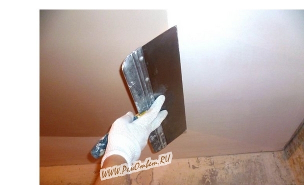 В первую очередь надо выявить нет ли выступающих шляпок саморезов. Для этого проведите шпателем по стене во всех направлениях — там, где шпатель будет цепляться, закрутите саморез поглубже.