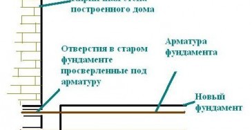 Новый бетонный фундамент будет определенное время давать усадку и мешать ему в этом не нужно, иначе можно только навредить. В месте соединения старого и нового фундаментов будет постоянное напряжение - новое основание будет давать усадку (тянуть вниз), а старый фундамент будет сопротивляться, так как под ним грунт уже уплотнился. Такое противостояние может закончиться разрушением соединяющей арматуры или бетонной части одного из фундаментов.