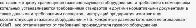 Если оборудование газовое, то производитель такого оборудования чётко указывает требования к помещению в котором оно установлена.