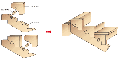 Здравствуйте! Более надежного способа крепления кобылок к косоуру, чем путем соединения с помощью шканта - не создано. Чтобы закрепить кобылку на косоуре, нужно измерить размеры шканта и по его параметрам сделать запилы в средине кобылки и места на косоуре, на которое будет установлена кобылка. Шкант вставляется в оба запила и скрепляет две деревянные конструкции: кобылку и косоур. При этом перед монтажом шкант обязательно обильно смазывается клеем, чтобы придать будущей лестнице прочности и надежности.