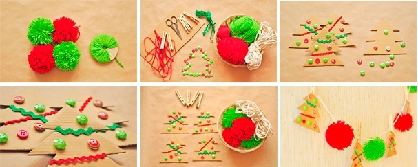 Если дома есть пластиковые, ненужные открытки, шишки бутылки, то из них также можно сделать красивые гирлянды и игрушки.