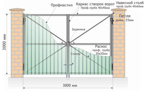 Вот чертеж самой простой калитки, правда не из уголков а из металлических труб. Главное не ошибиться в разметке, оставив между столбами необходимое место, а для прочности необходимо посредине приварить трубу.