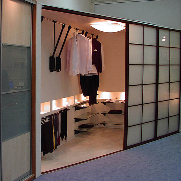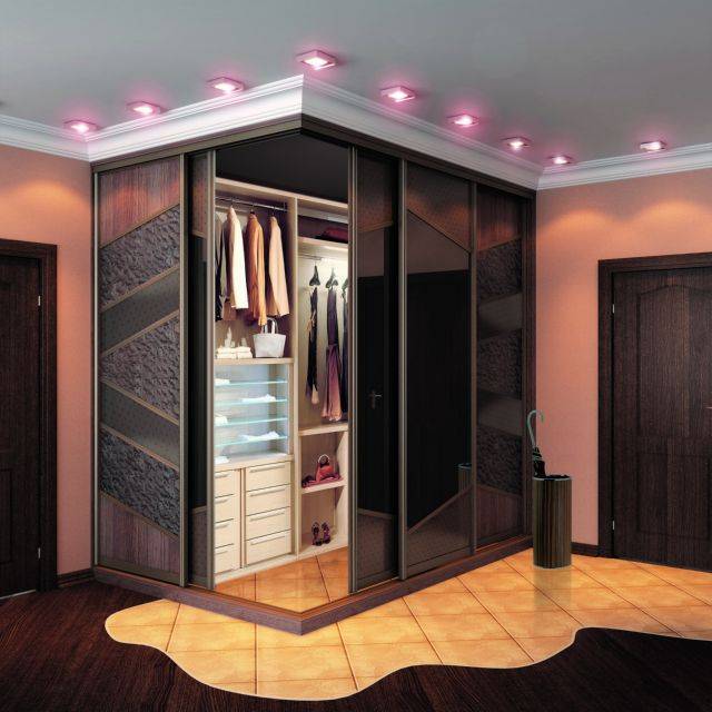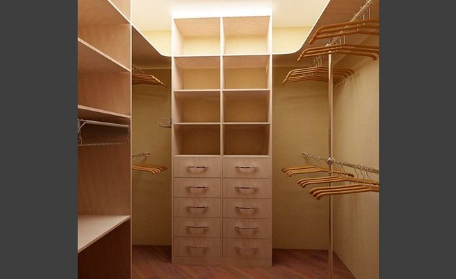 Обратите внимание на подсветку, обязательно гардеробная должна иметь хороший яркий свет.