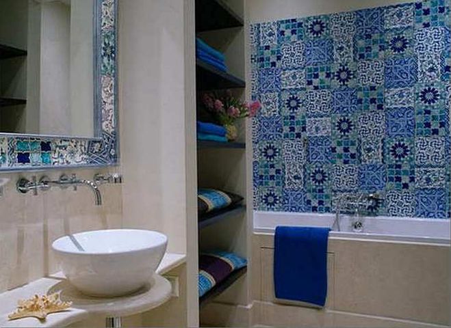 Кафель майолика (изразцы) - отличное решение для создания комфортного жилья. Такой кафель делится на настенный и напольный, то есть им можно выложить помещение полностью. Получится красиво, оригинально и индивидуально, так как графику вы можете создать по своему вкусу. Вот некоторые образцы санузлов, отделанных кафелем Majolika