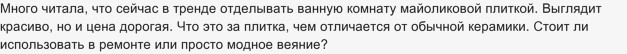 Из практики могу сказать, данную плитку кладут не часто, но там где она лежит внешний вид помещения впечатляет, плитка Майолика действительно смотрится великолепно.
