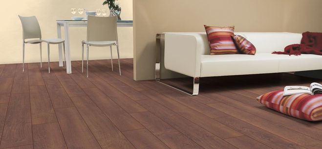 Ламинат начинают укладывать с той стороны, в которой находится окно. Отступить от стены приблизительно 15 мм, первую ламель класть шипами к стене. Следующие ламели вставляются шипами в пазы к предыдущим.