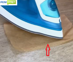 Если такой возможности нет (подогнуть линолеум), то пробуйте с наружной стороны, но температуру на утюге лучше выставить на минимальное значение.
