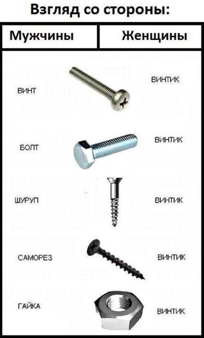 Гвоздь - это такой абсолютно гладкий винтик, такая себе железная палочка, которую в стену вбивают молоточком (плоской железякой с рукояткой).